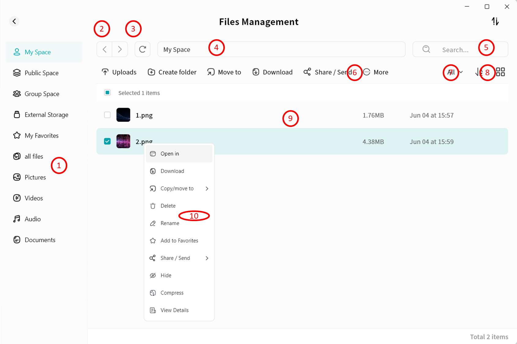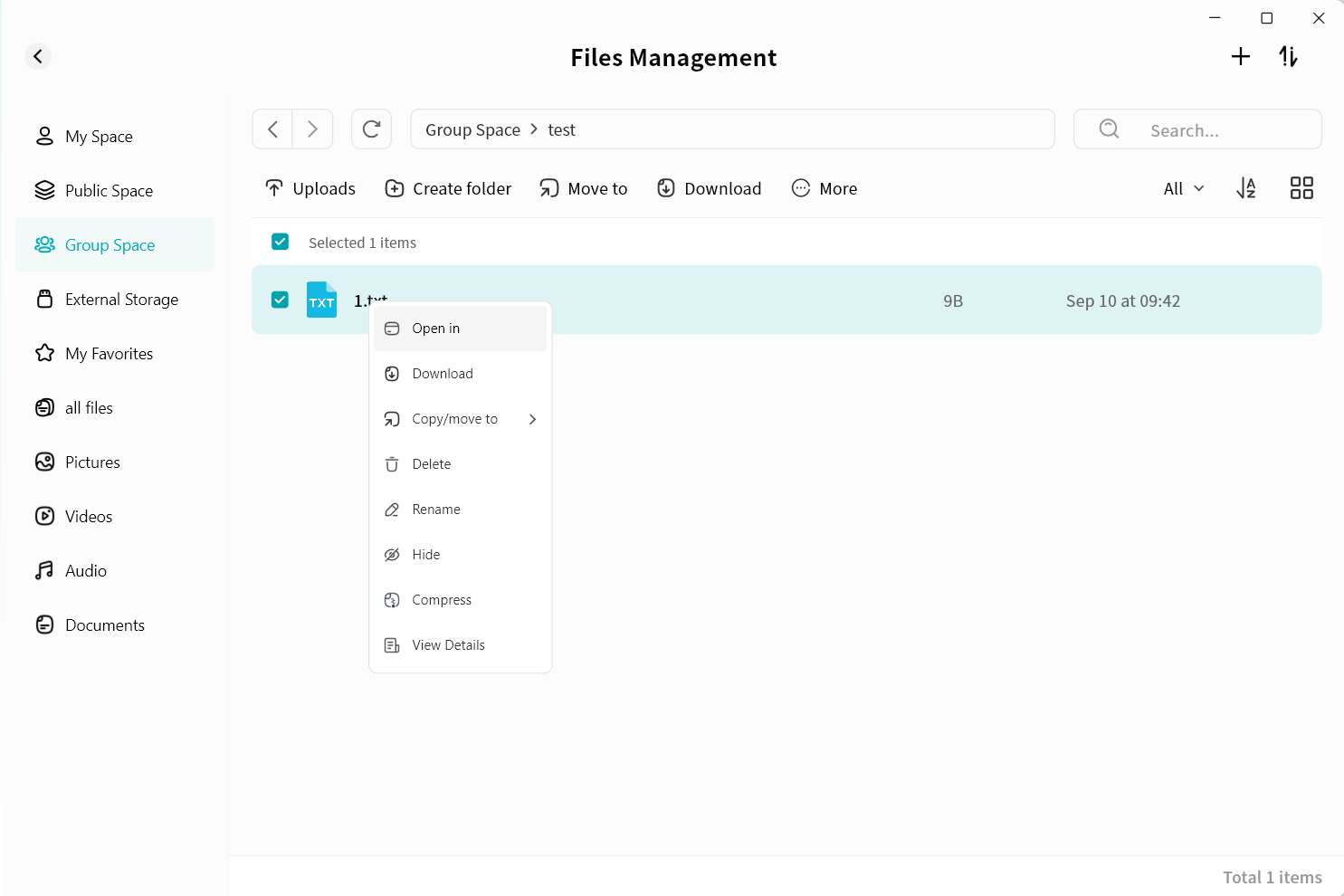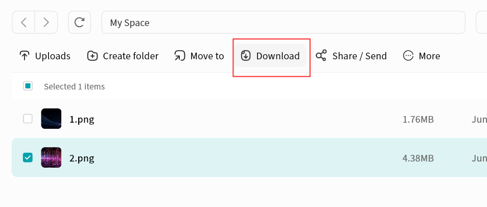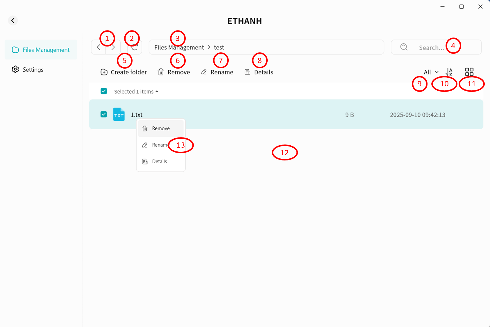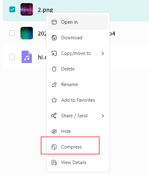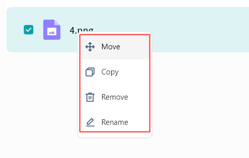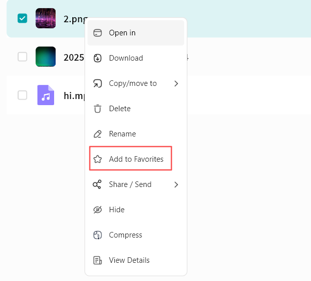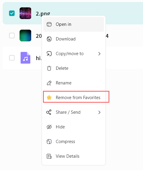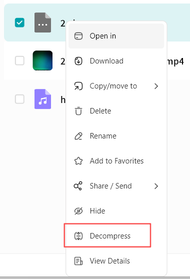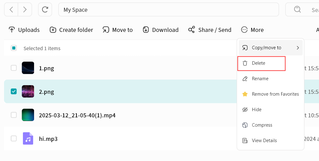 Use right-click menu for download, delete, rename, or details