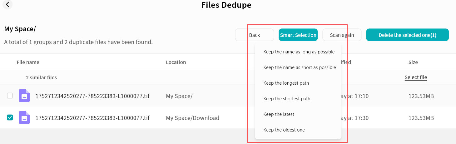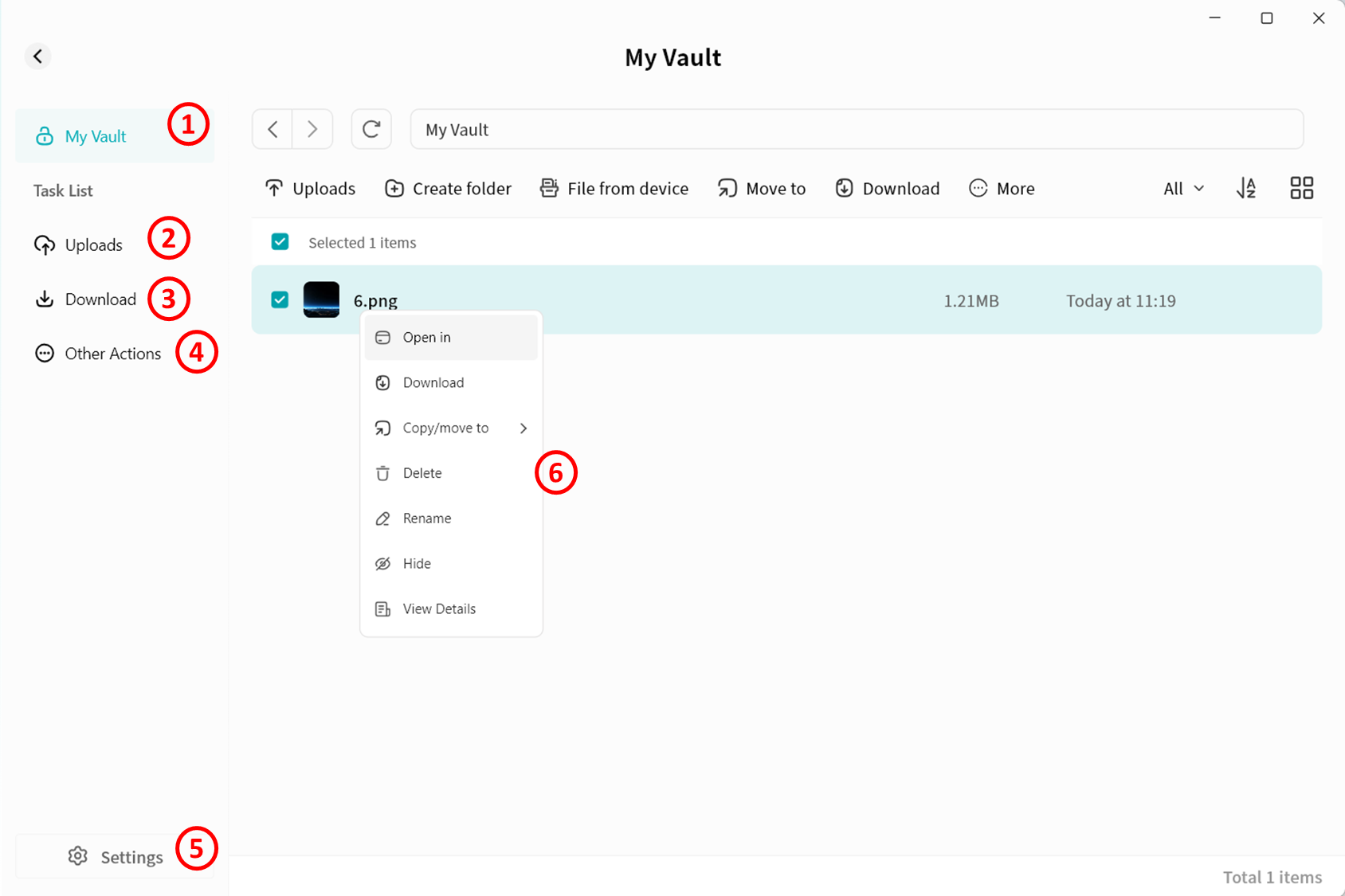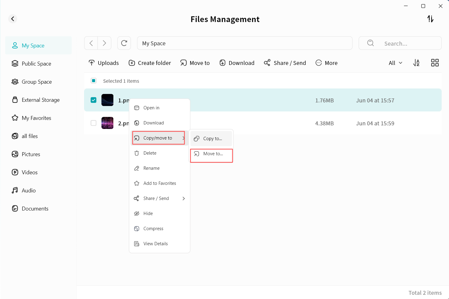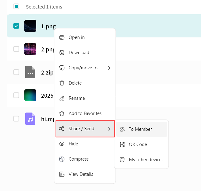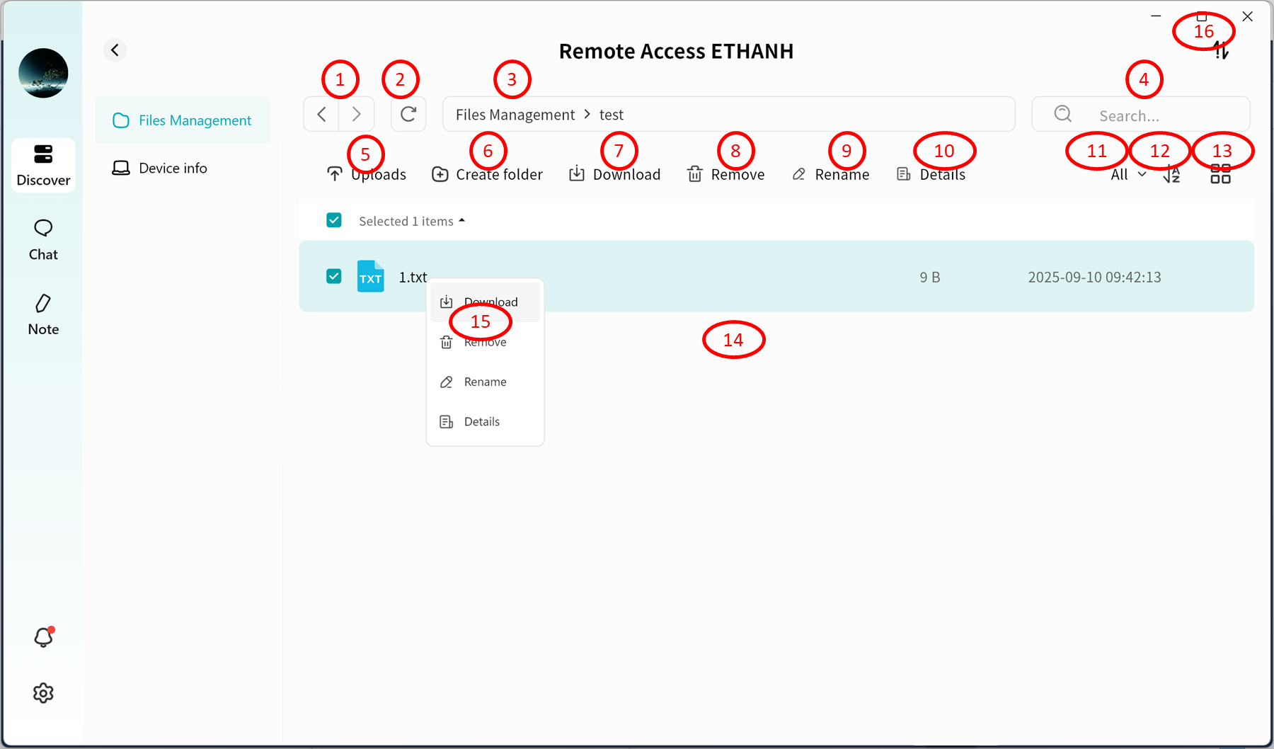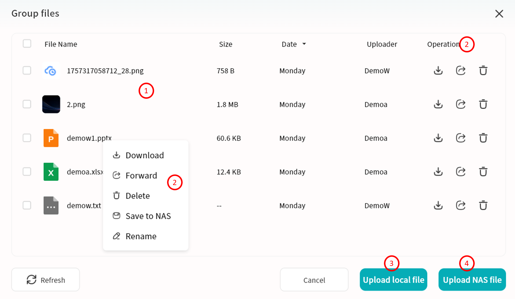 Use right-click menu for download, delete, rename, or details