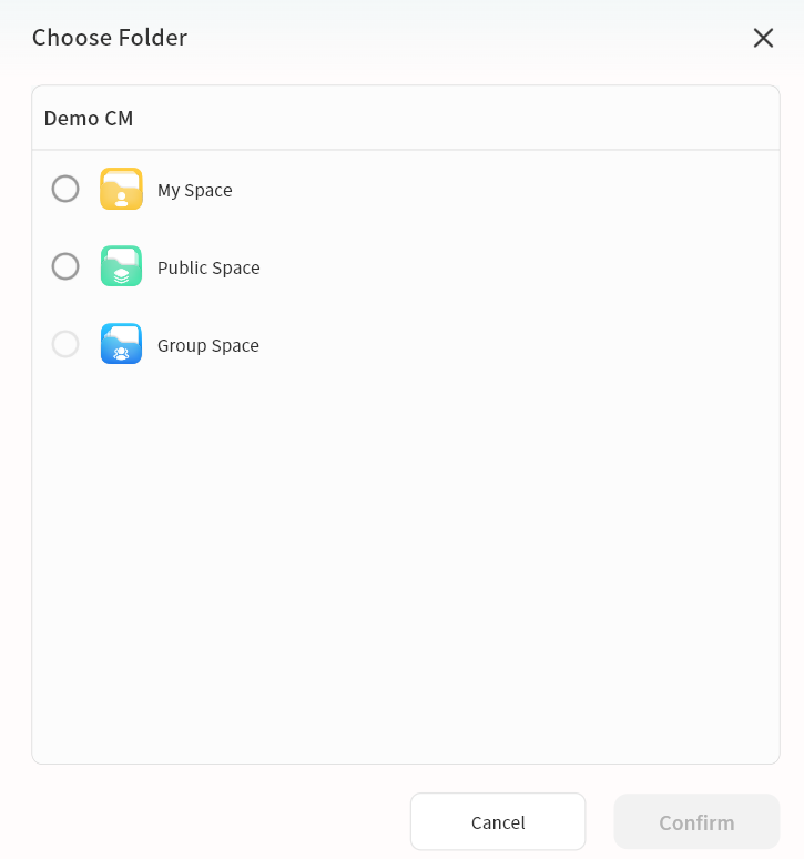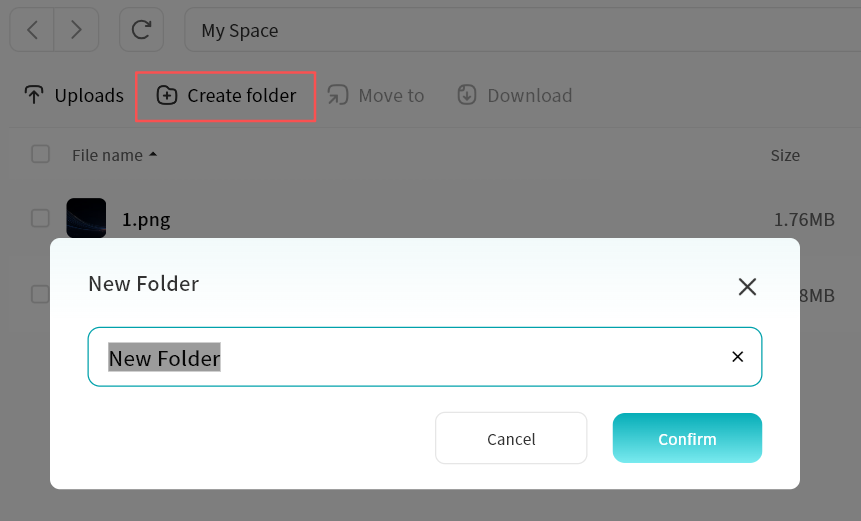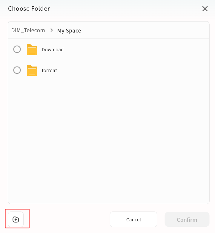 Use the + button to upload files, upload photos/videos, or create new folders