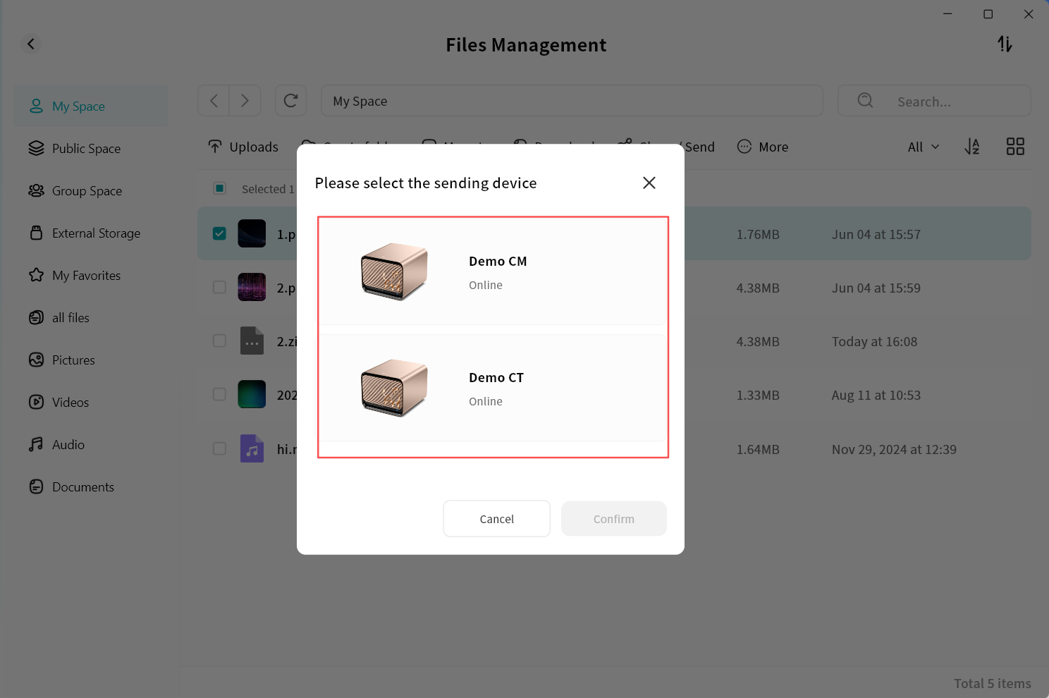 Select a device to access its functions and manage files.