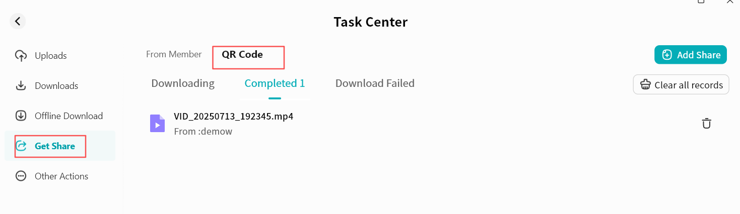 Add Device: Enter a share code to bind another user's DASSET device.