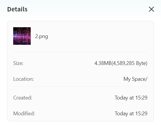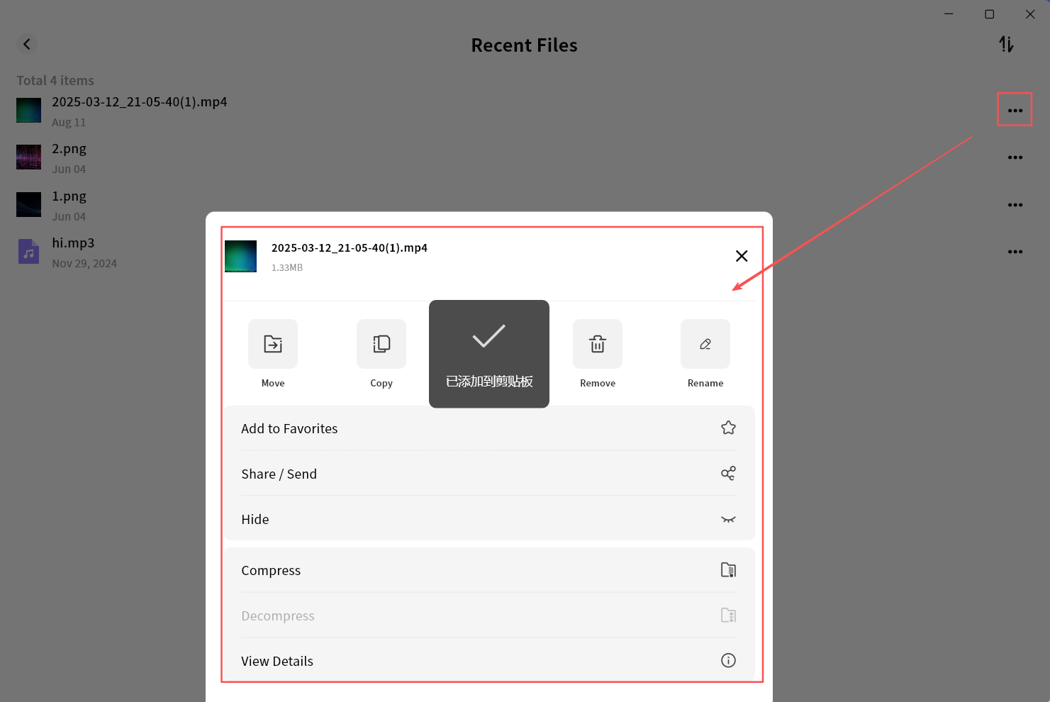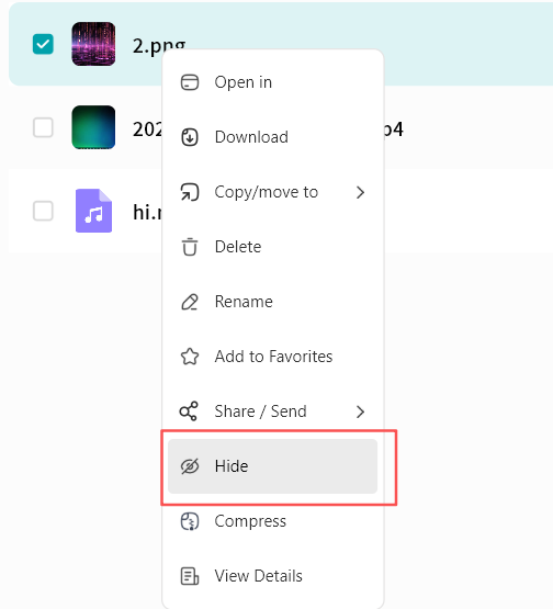 Open file menu for download, delete, rename, or details