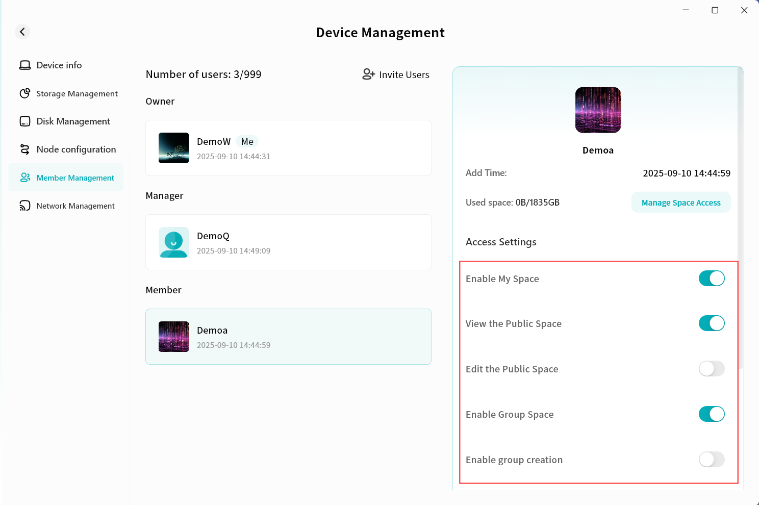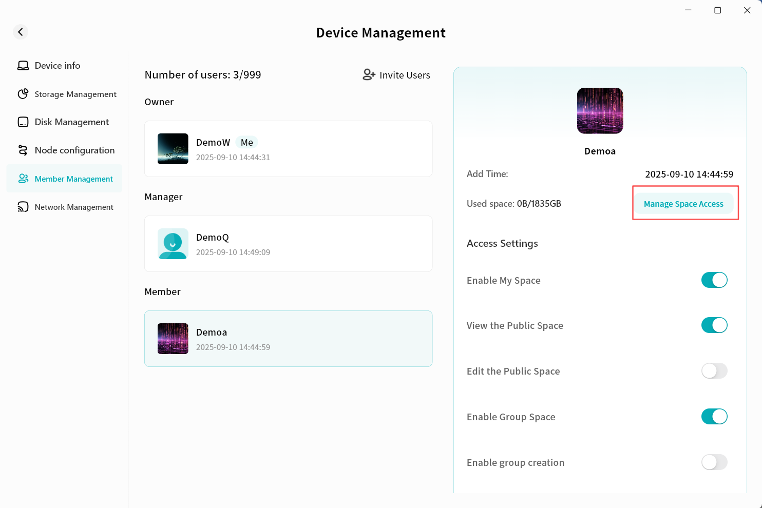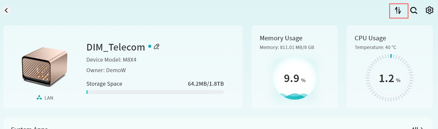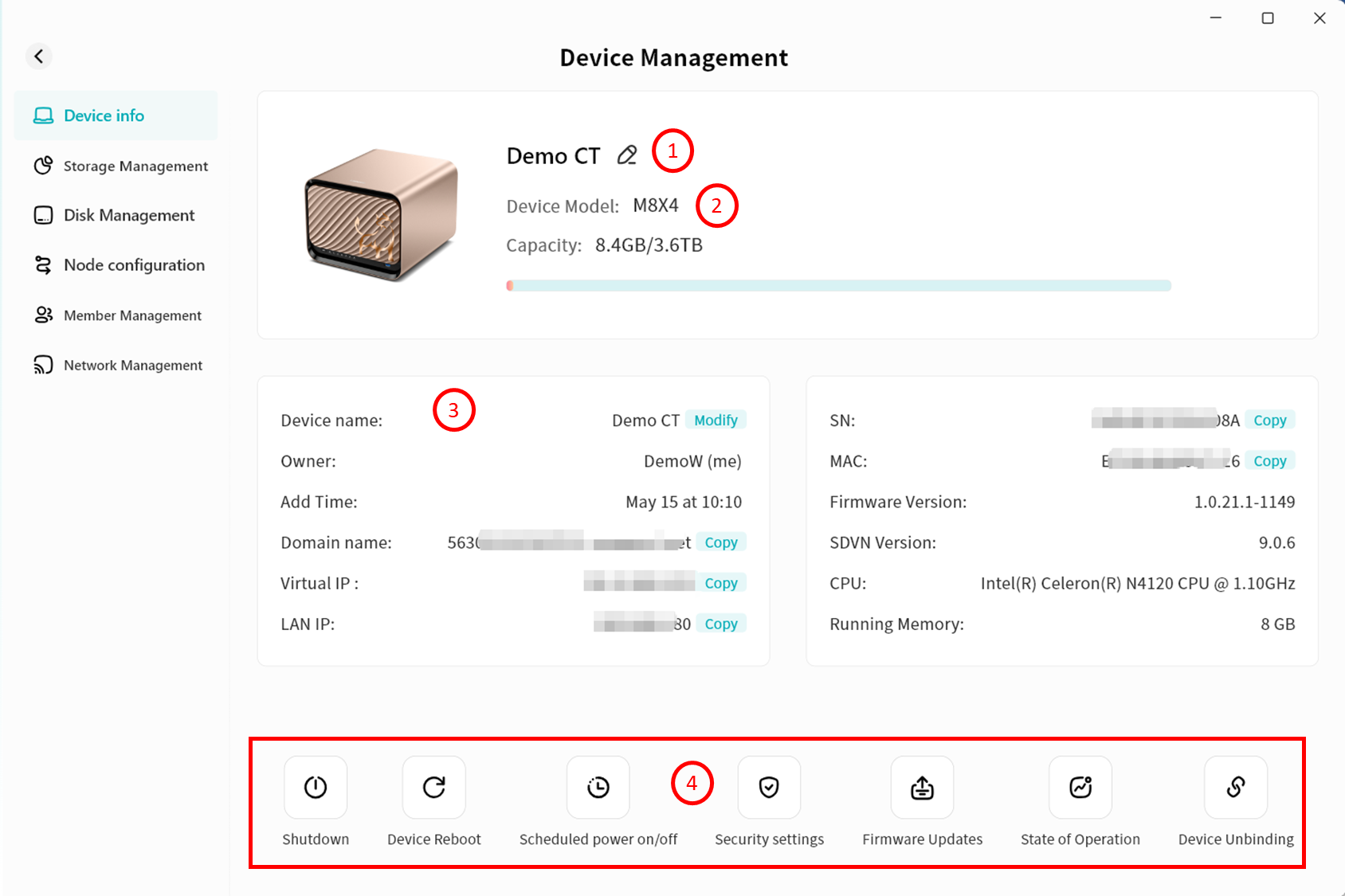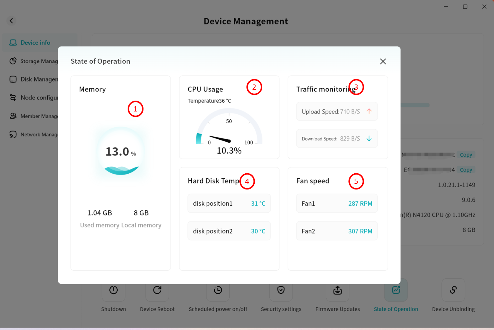 Device Information: View terminal details running Lite NAS