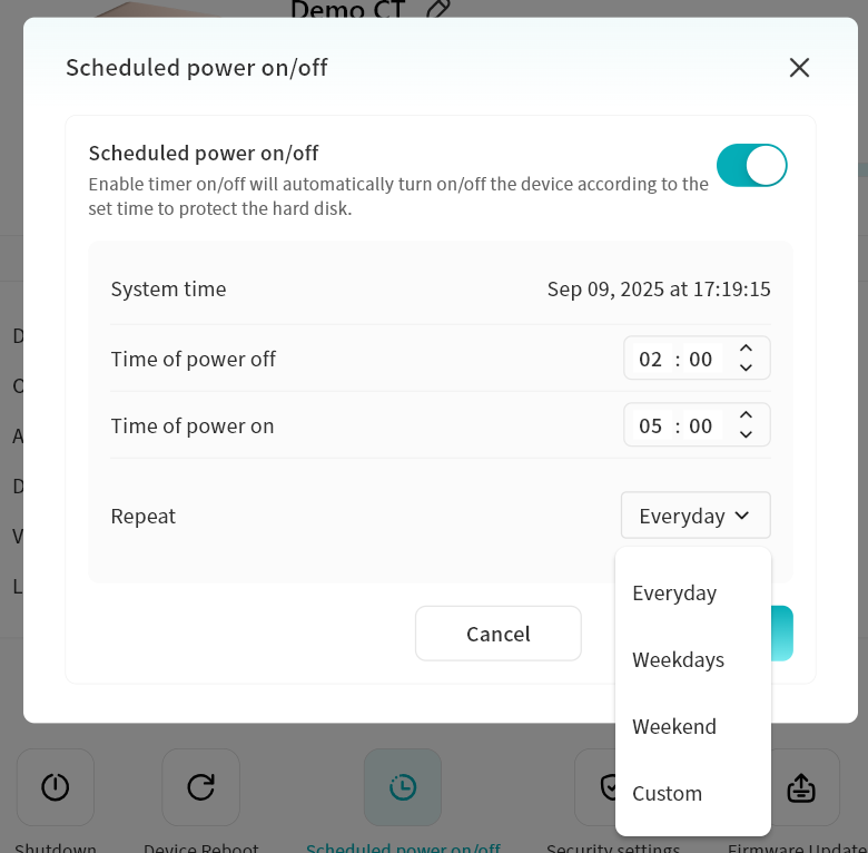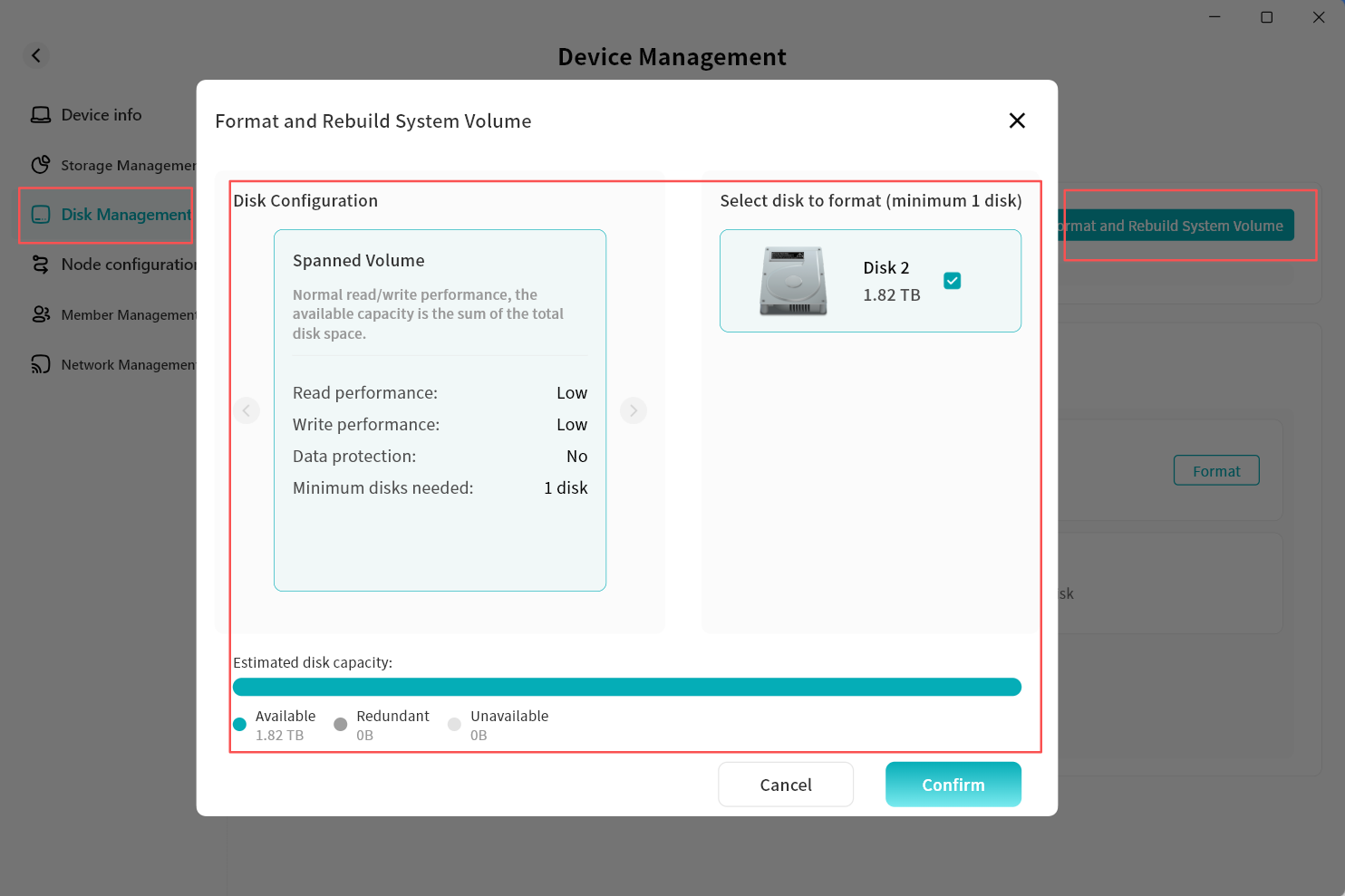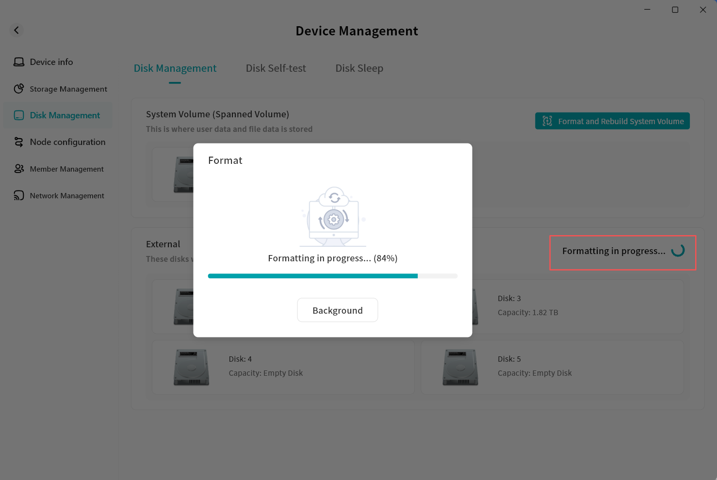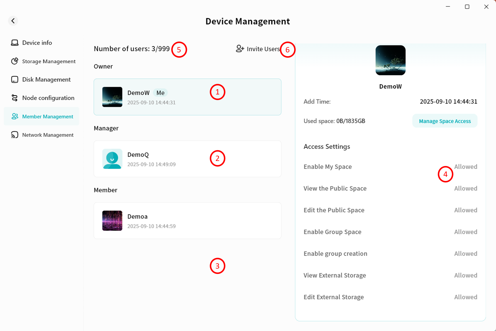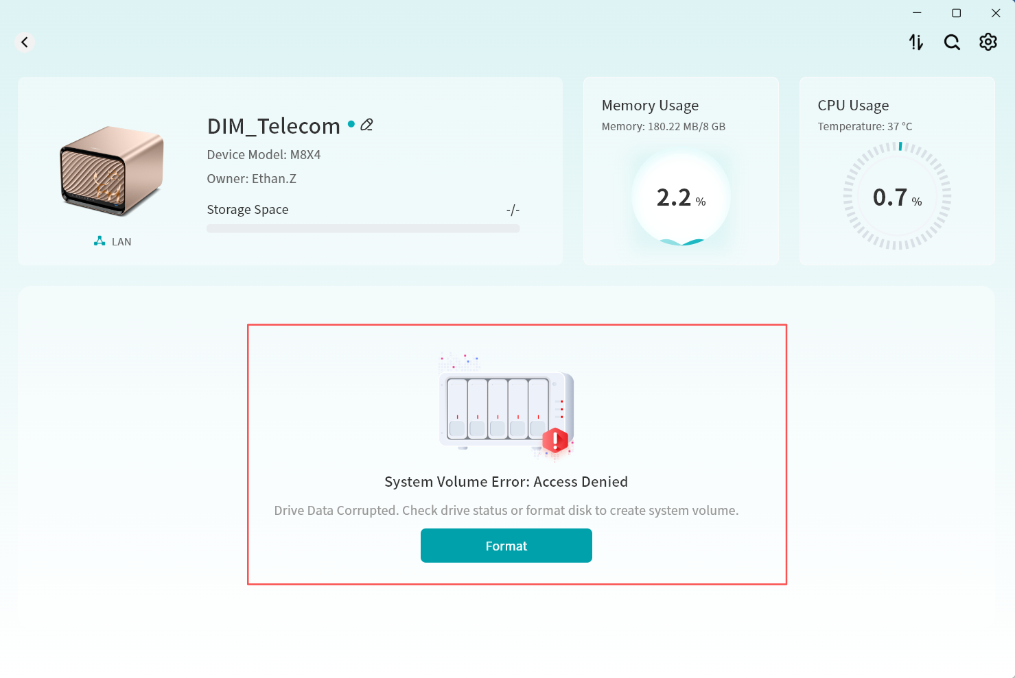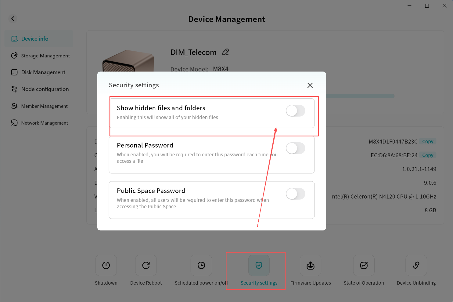 Device Information: View terminal details running Lite NAS