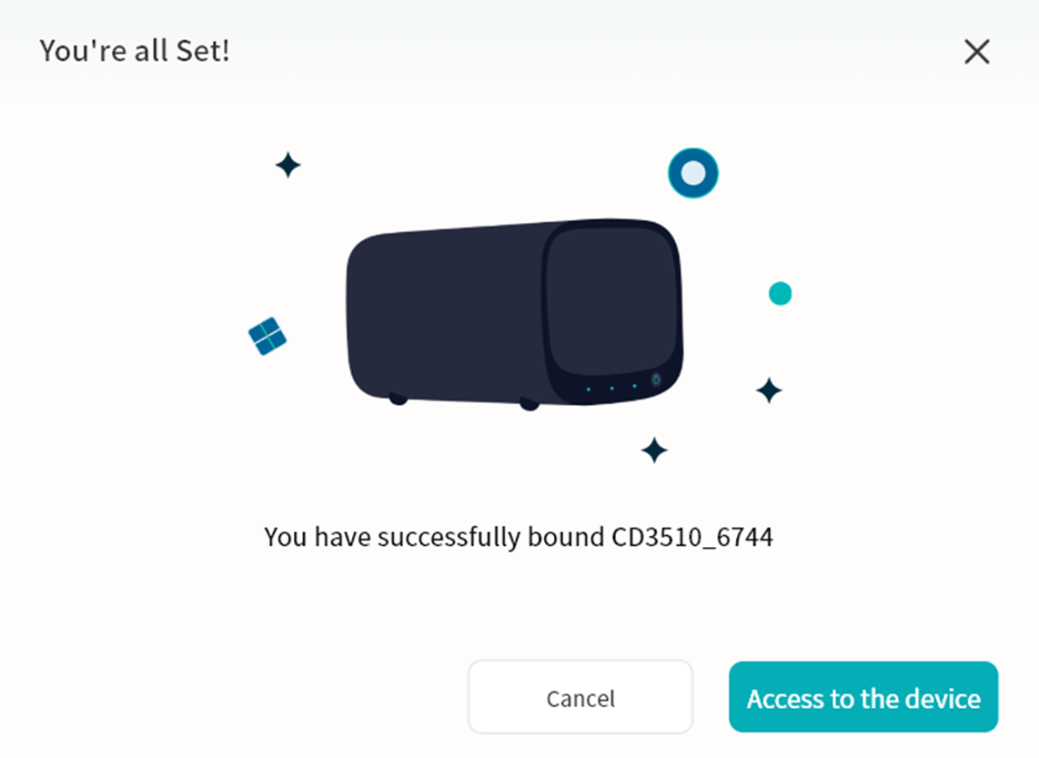 Once you allow an account to bind to your DASSET device, that account will be able to read all data in your Public Space and access your subnet or devices if enabled. Please confirm carefully before clicking Accept.