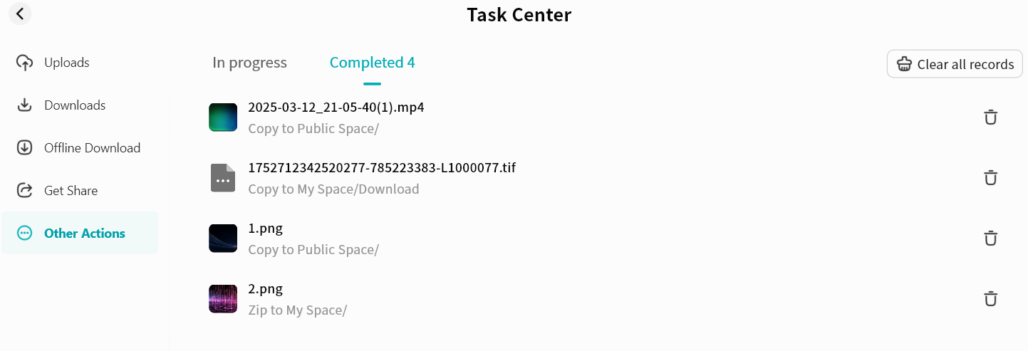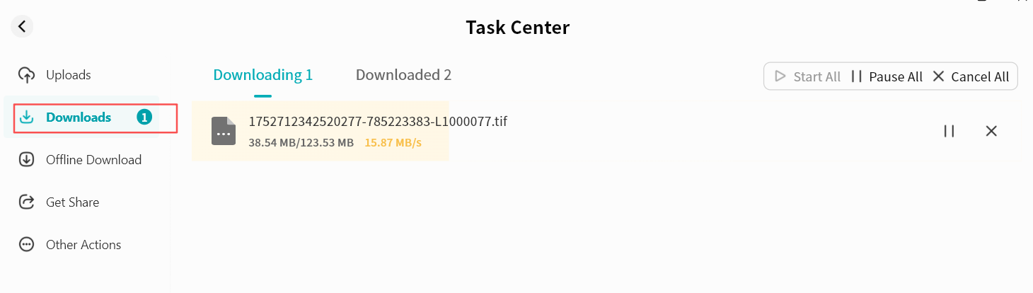 Access Task Center for upload/download progress