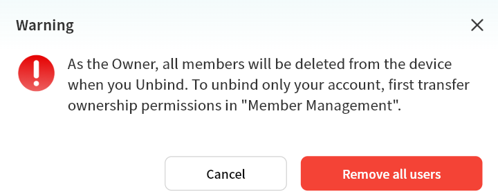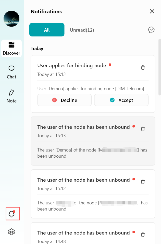 Notifications: View device binding notifications here, including binding, unbinding, and binding requests.