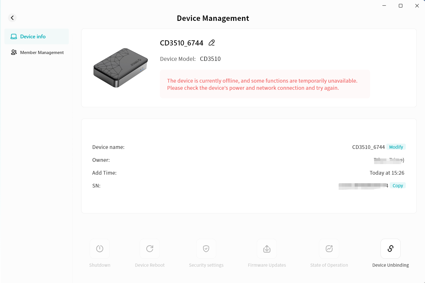 Device List: Displays all devices bound to your account, including both your own devices and those shared with you by others. The list clearly shows whether each device is online or offline.