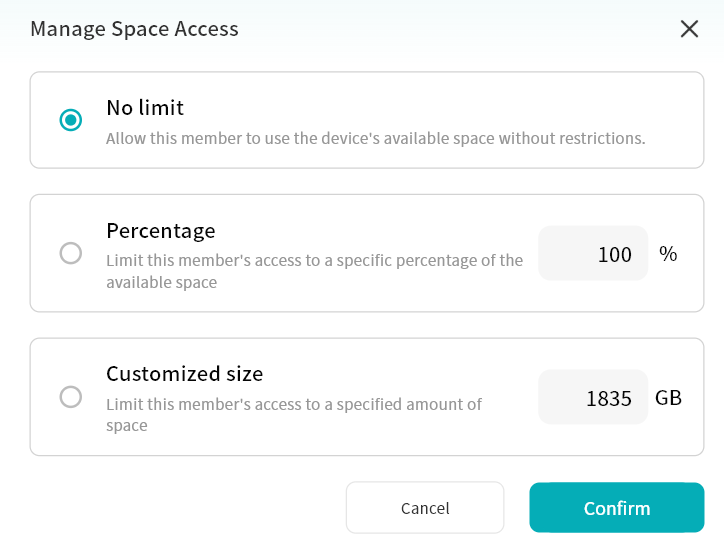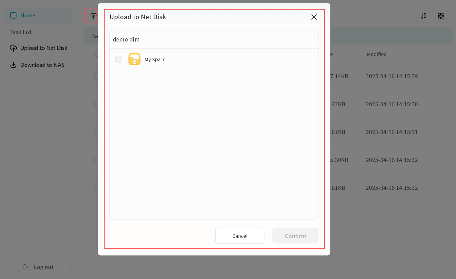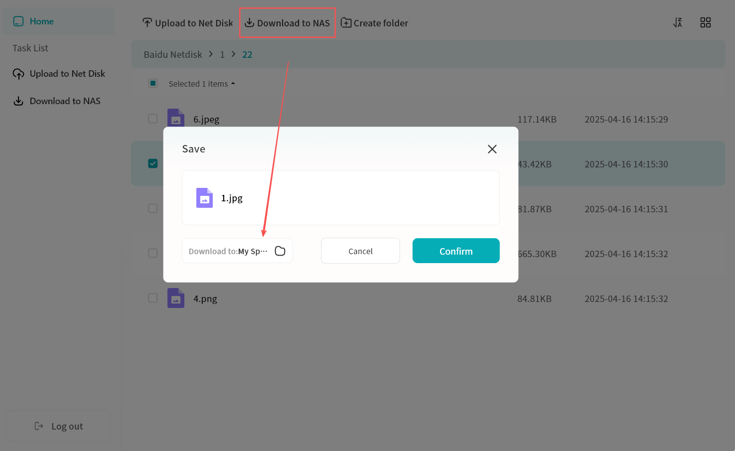 Within the Lite NAS file manager, you can: