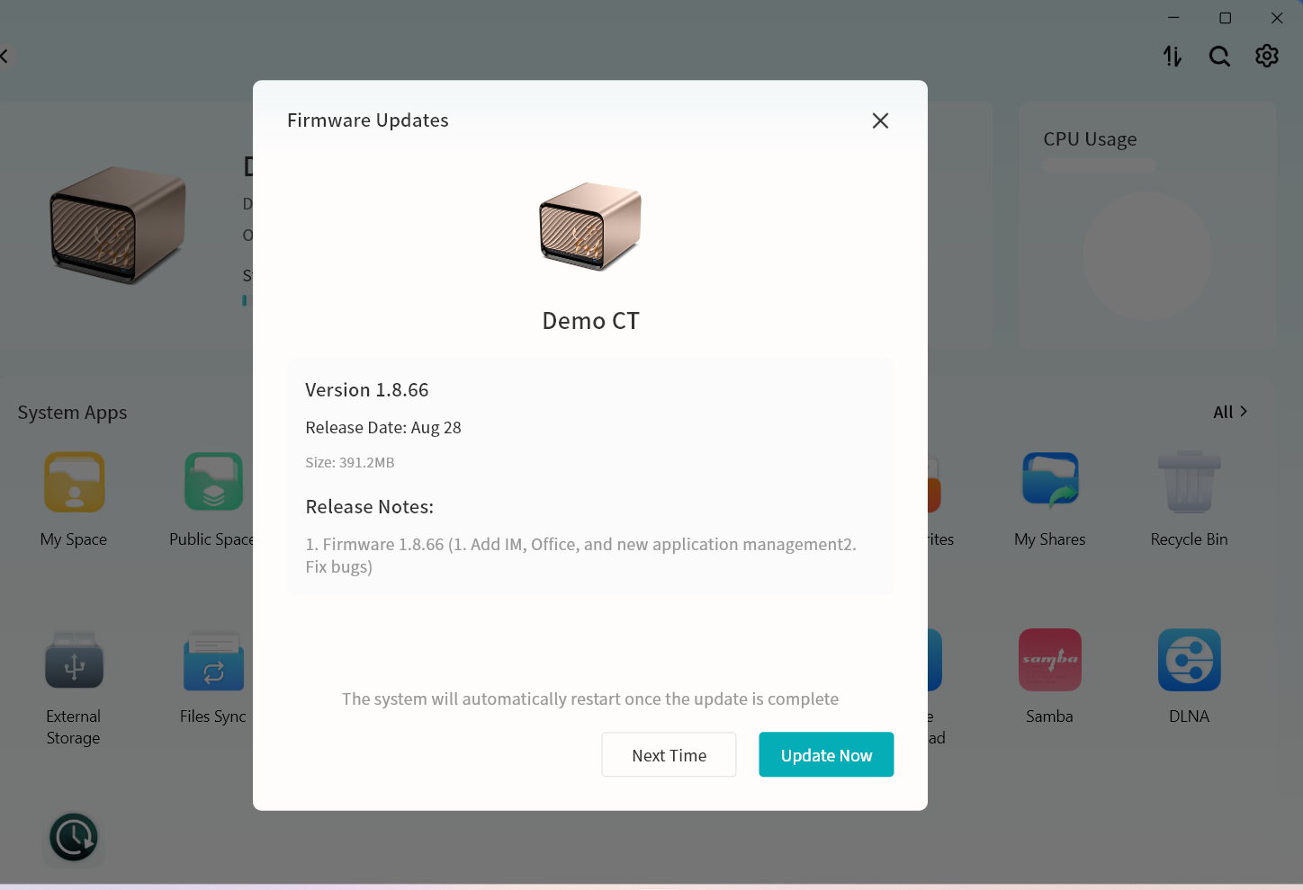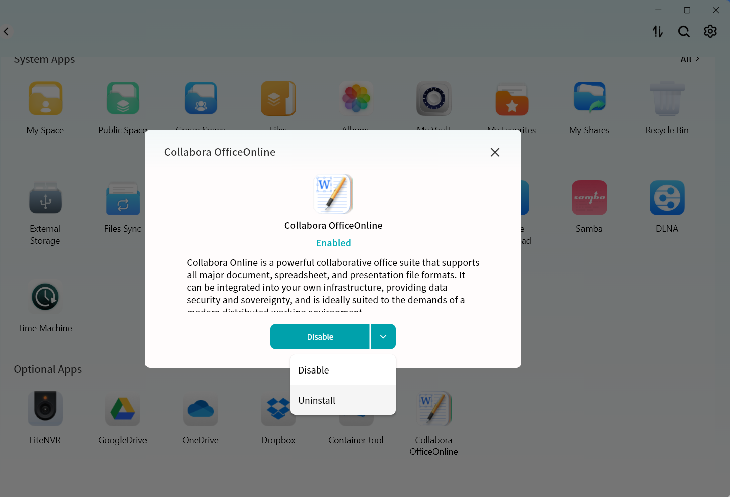 Enter the Lite NAS interface:
