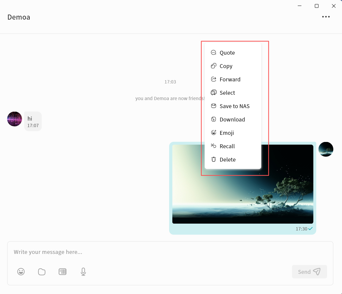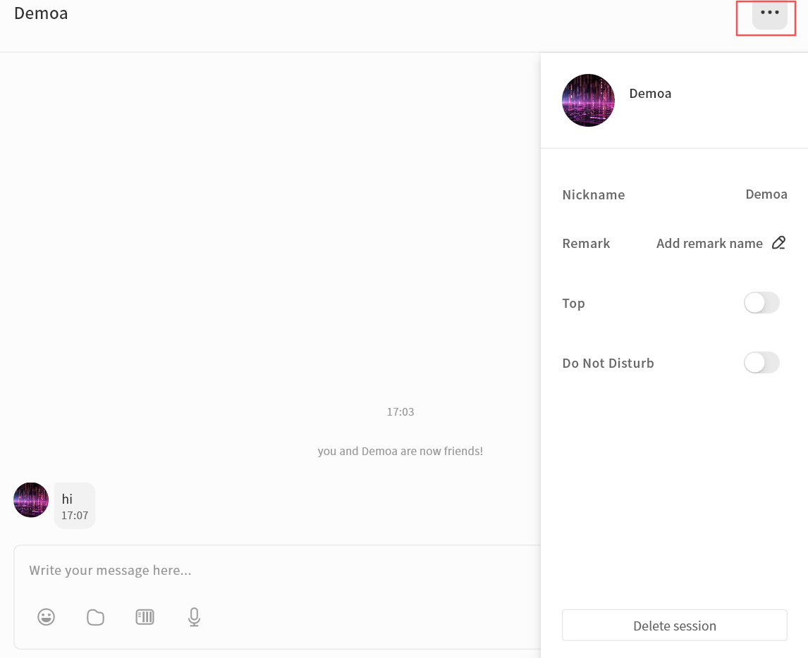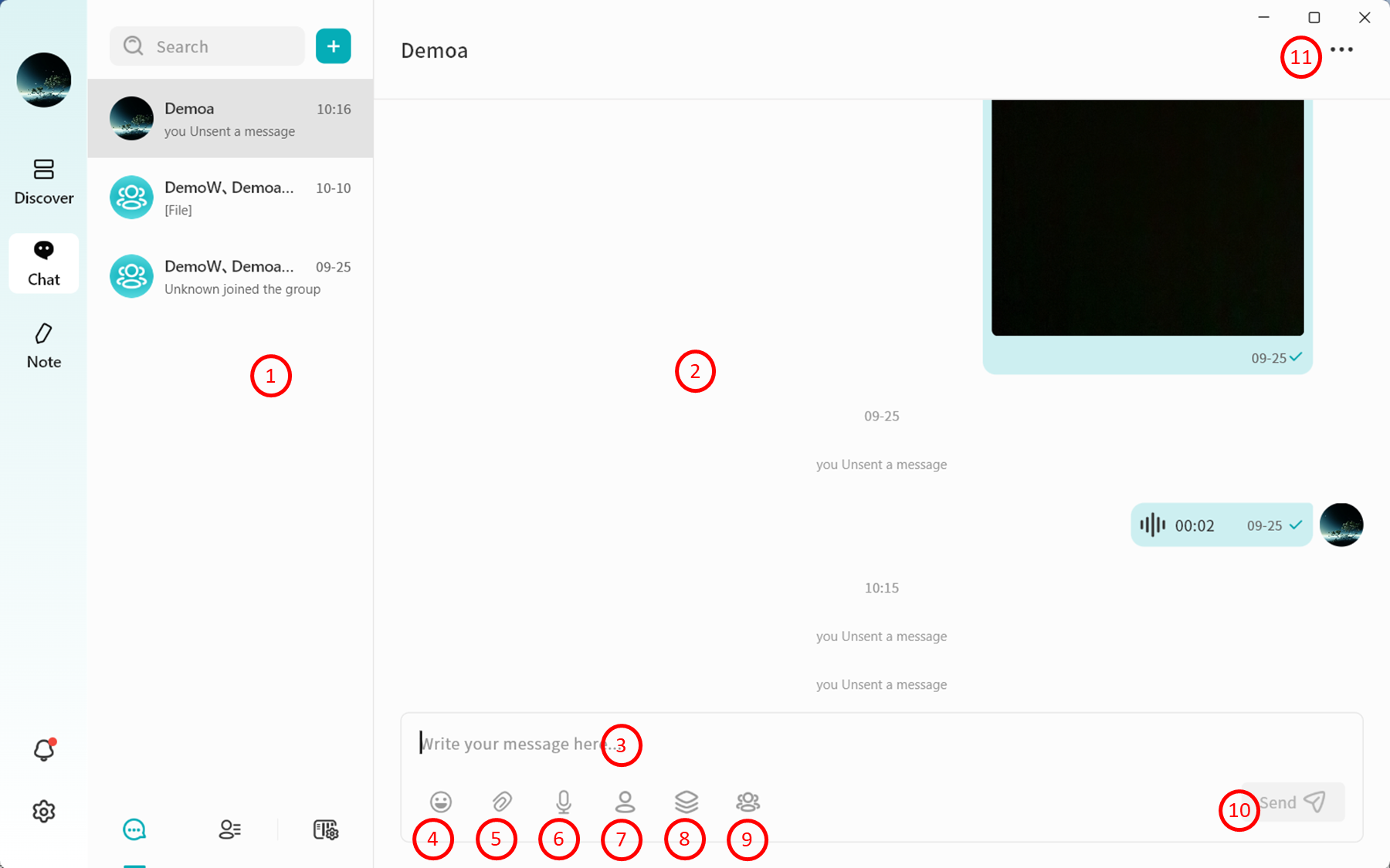 - Chat: Enter the chat function to communicate in real time with other users on the same DASSET device. All chat records are stored locally on that DASSET device.