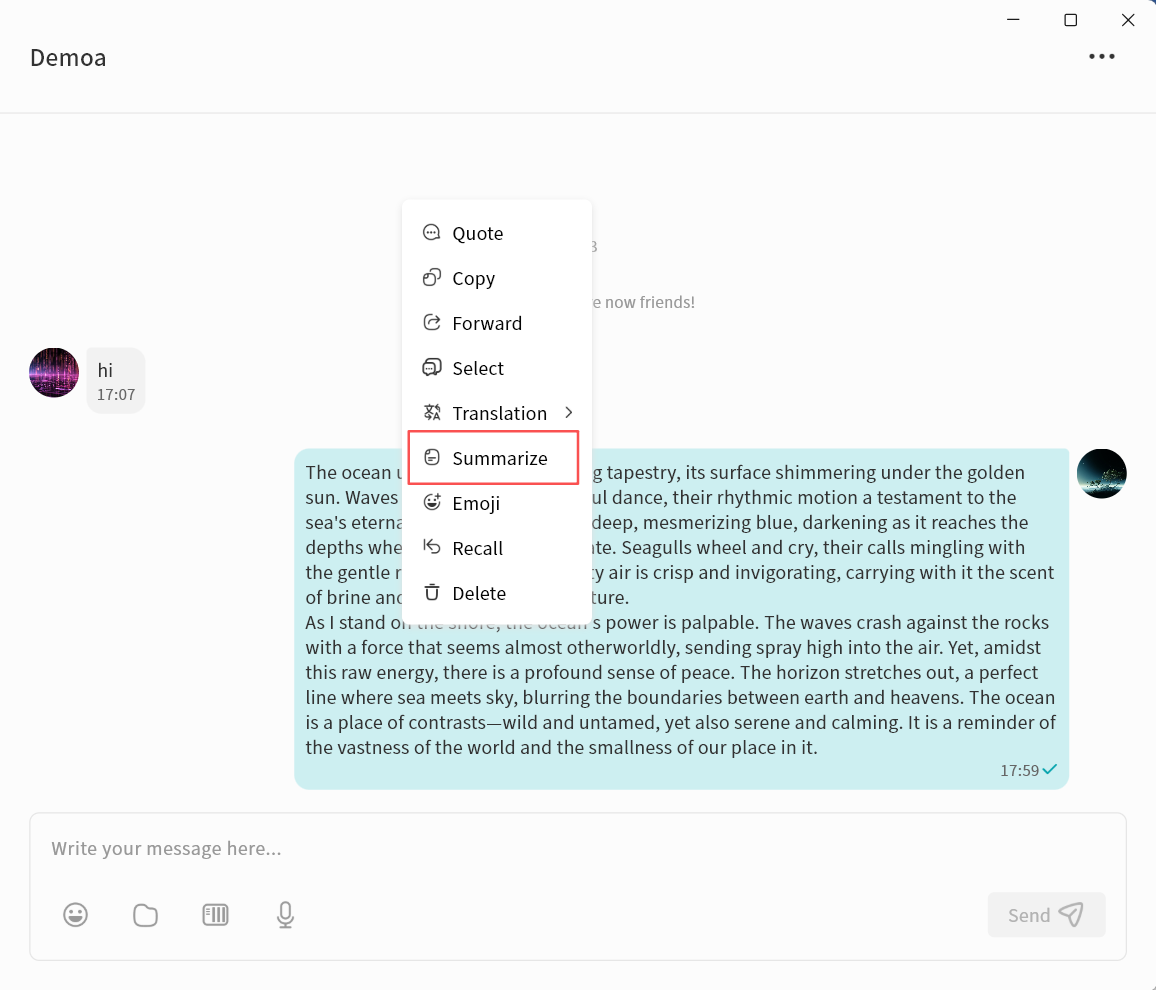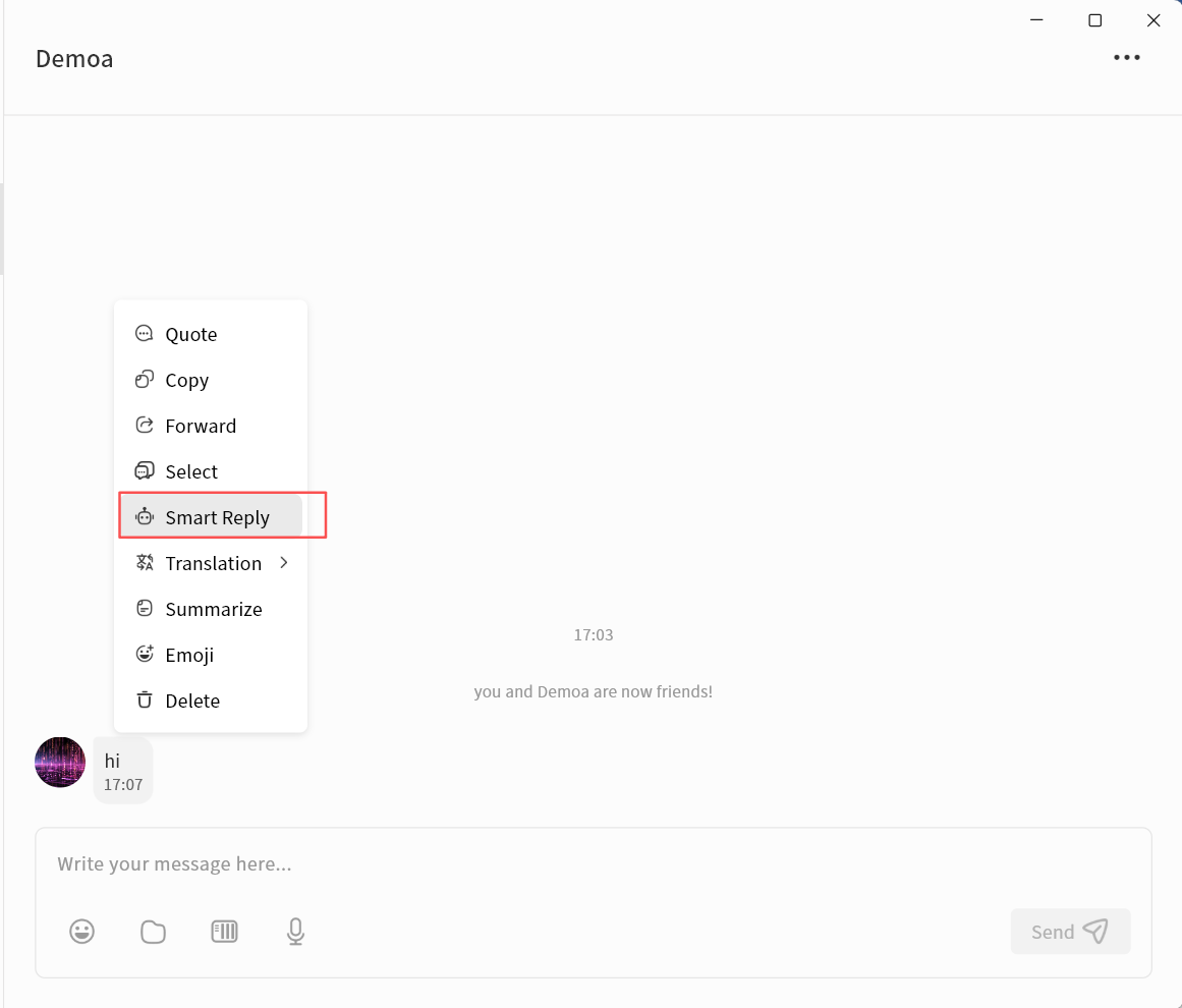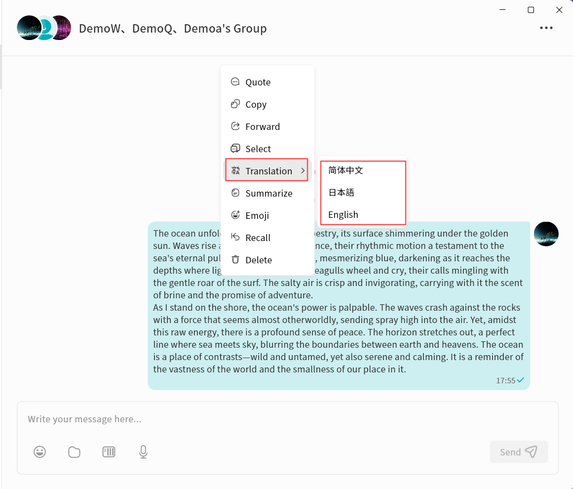 - Chat: Enter the chat function to communicate in real time with other users on the same DASSET device. All chat records are stored locally on that DASSET device.