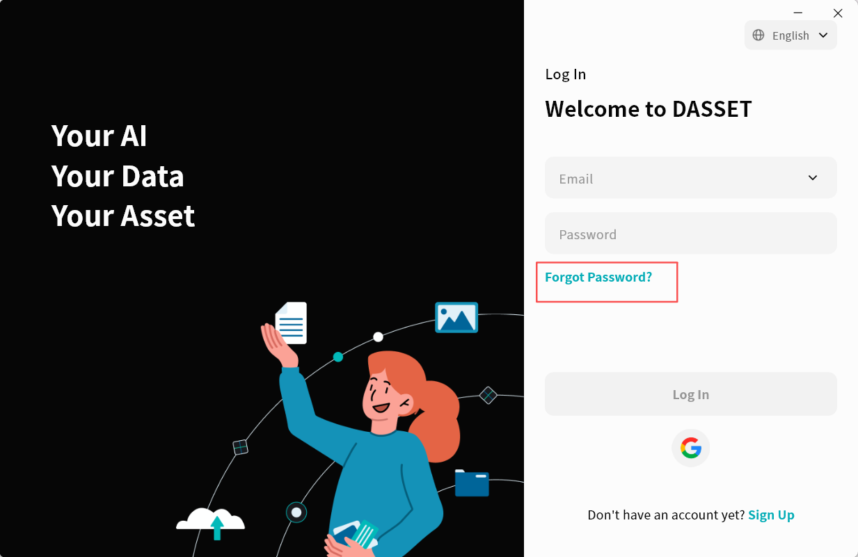 You can log in to DASSET with one-click authorization using your Google account, without the need to register.