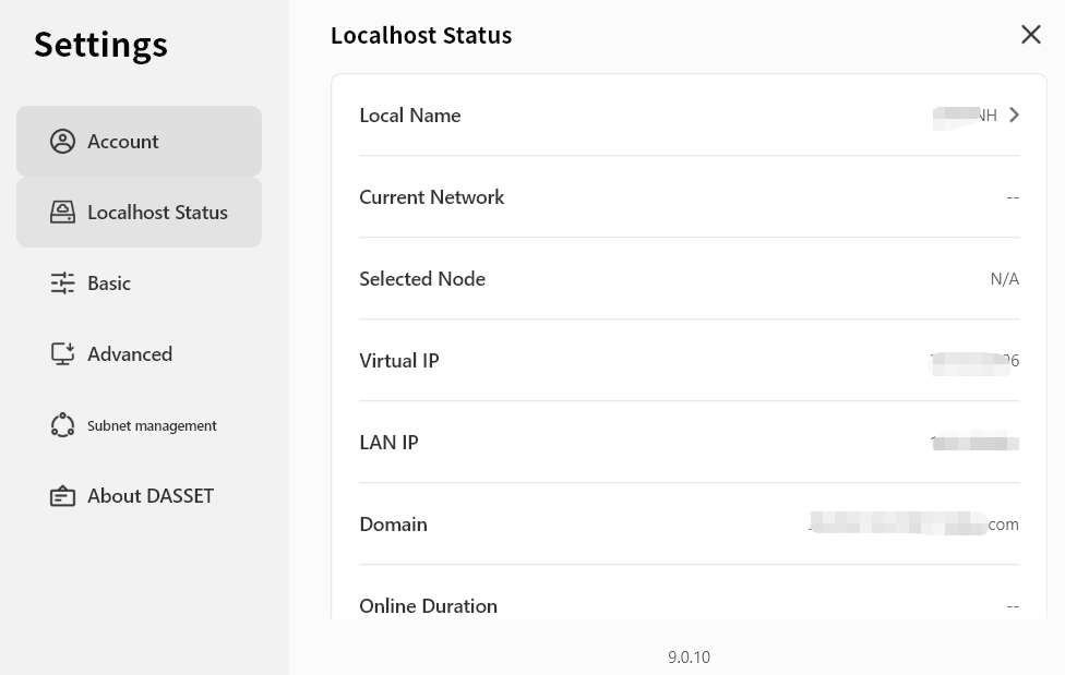 Virtual Network IP: The virtual IP address of your computer, used to communicate with DASSET devices in the SDVN virtual network.