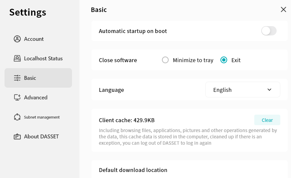 Default Download Location: Choose the directory where downloaded files from DASSET will be stored. You can change this at any time.