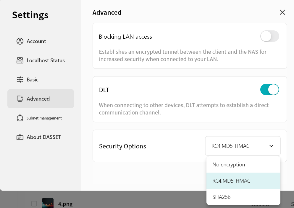 When disabled, if the client detects that the DASSET device is on the same LAN, communication will occur in plaintext over the LAN. This is faster but less secure.