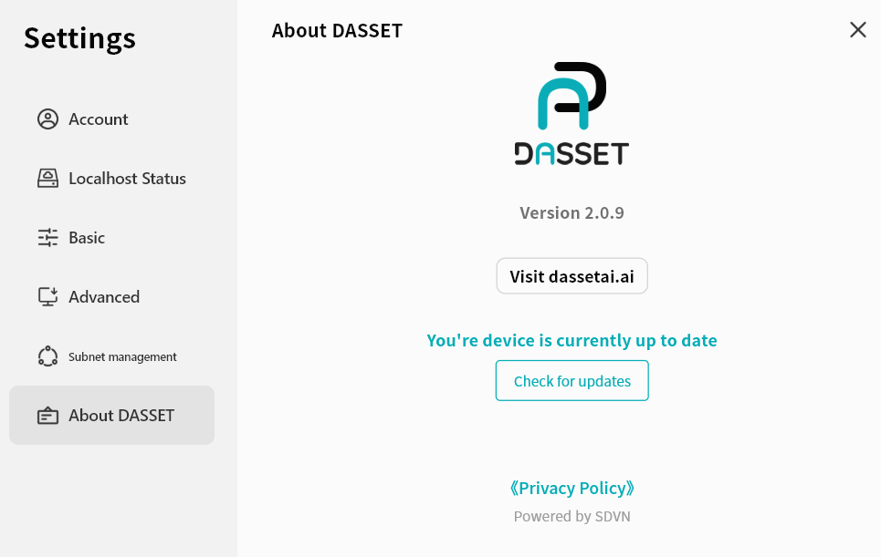 Settings: Configure DASSET desktop client settings.