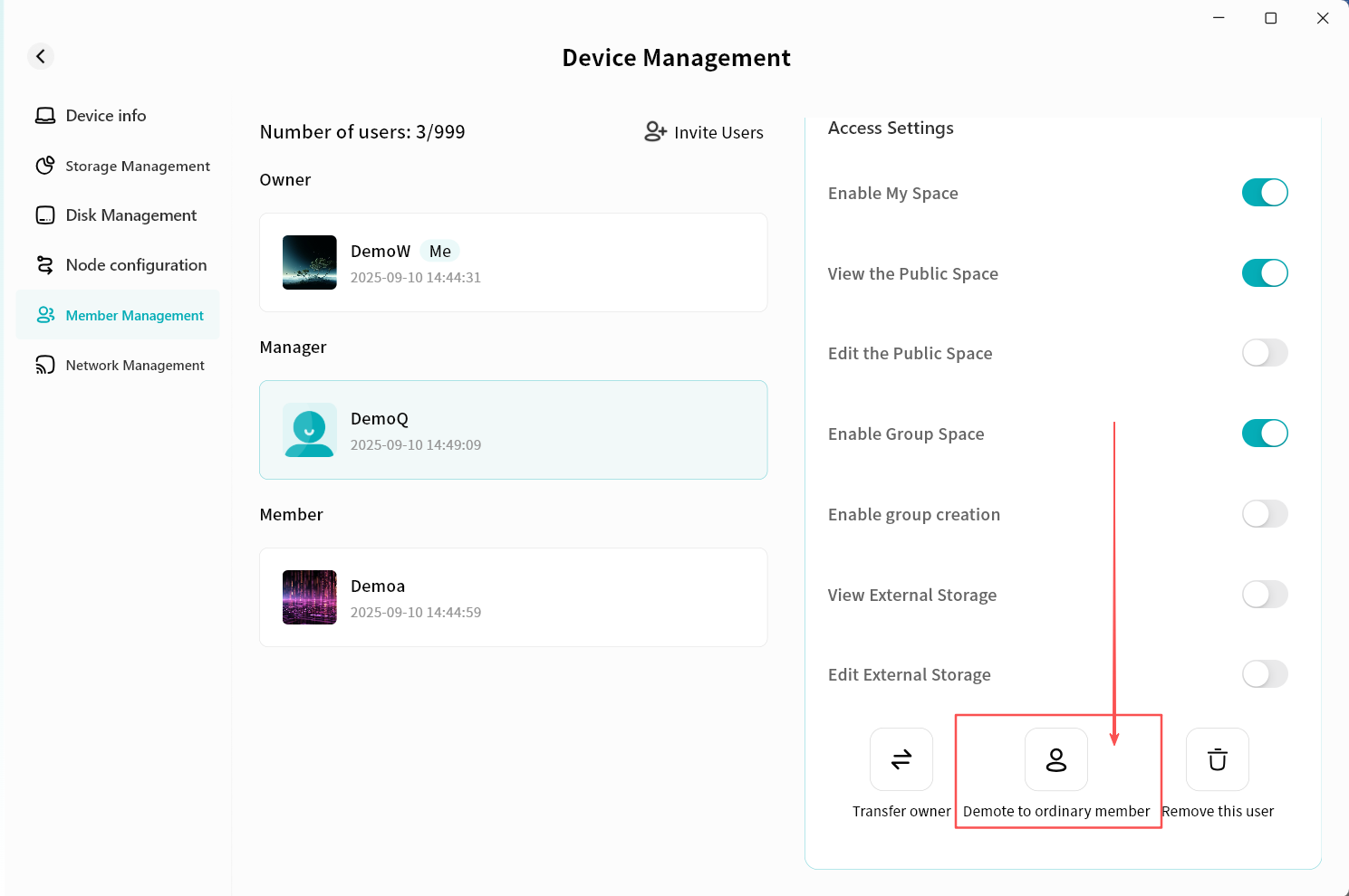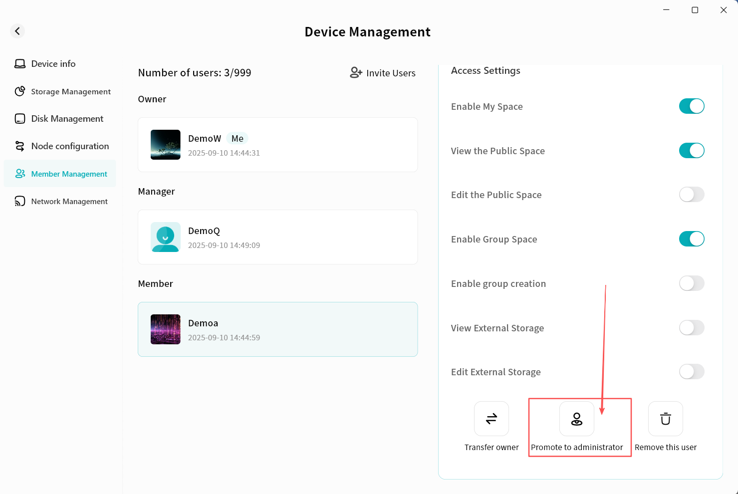 On the Lite NAS file manager, you can:
