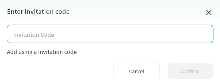 - Enter the Invitation Code provided by another user (usually an 8-character string).