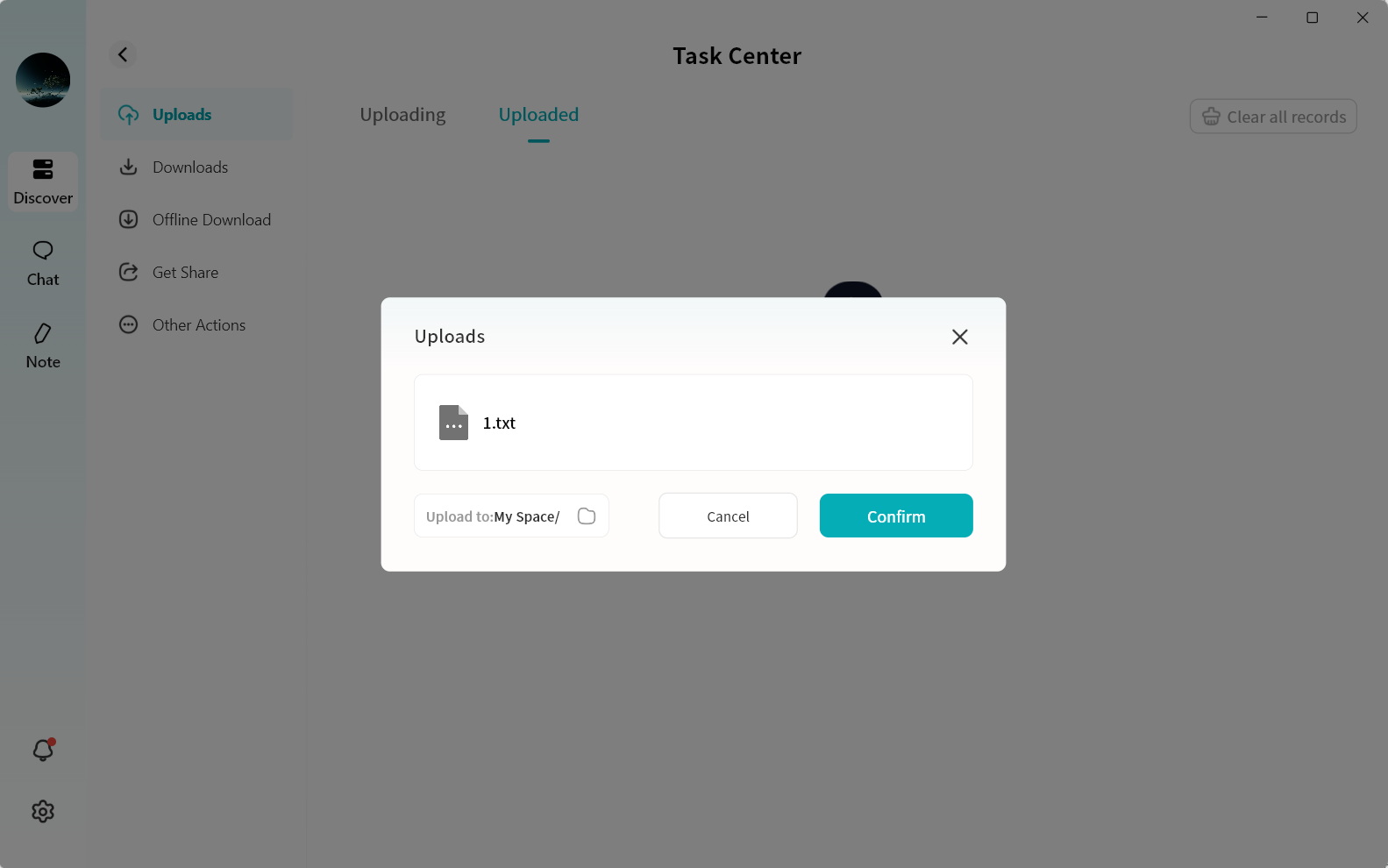 Open Task Center to track upload and download progress